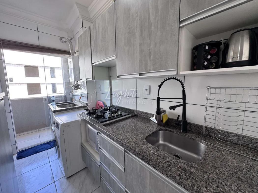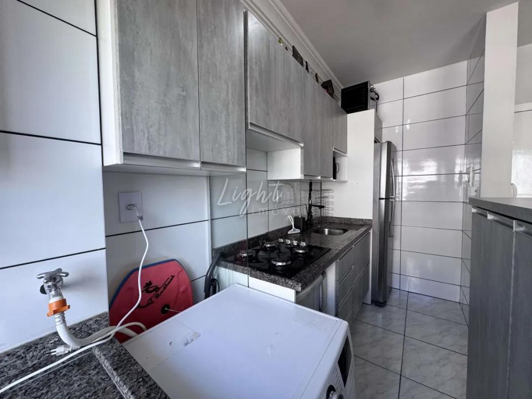 A unidade possui 40,11 m² de área privativa, distribuídos de forma funcional, proporcionando conforto e bom aproveitamento dos ambientes. O imóvel conta com sala integrada, cozinha planejada com armários sob medida e acabamento em granito, além de área de serviço.