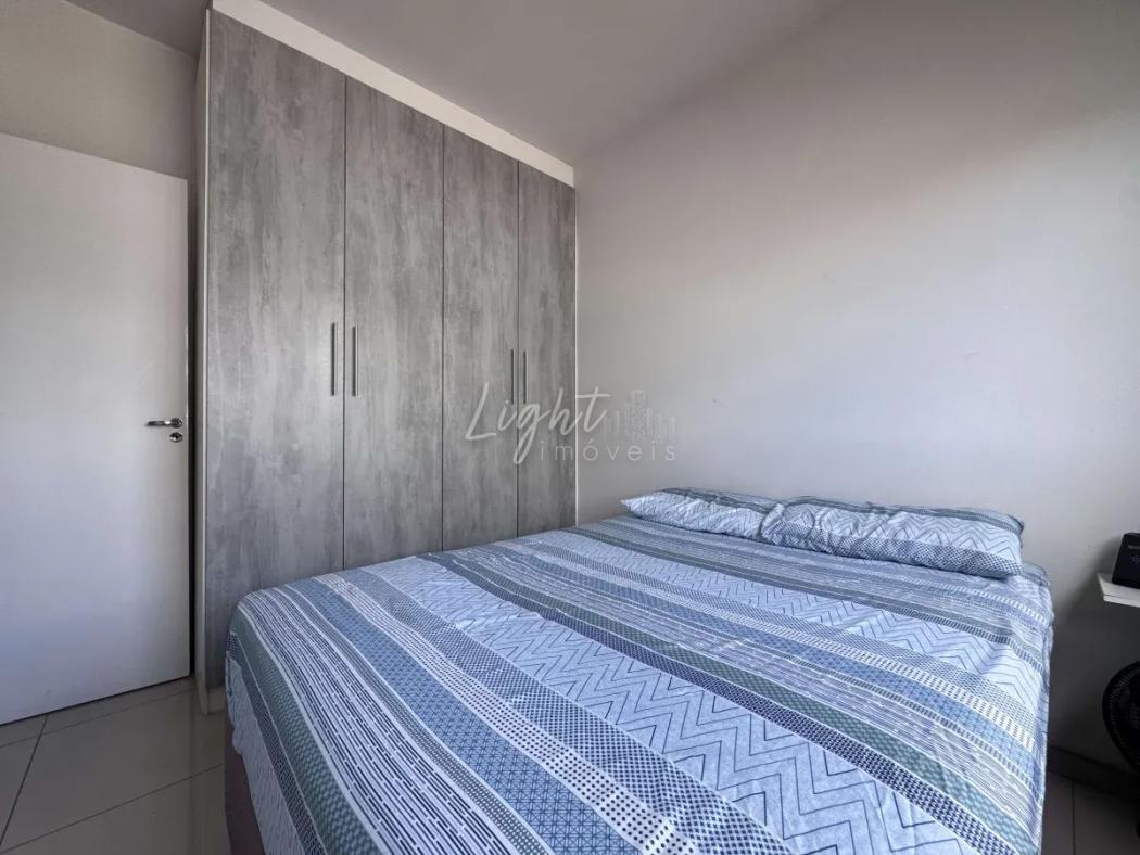 O dormitório dispõe de armários planejados, oferecendo praticidade e organização. O apartamento está situado no 3º pavimento, com face oeste, garantindo boa incidência de luz natural no período da tarde. O apartamento possui sacada com churrasqueira, aquecimento a gás e fechadura digital.